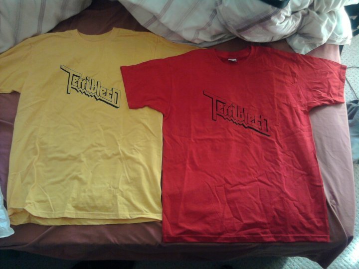 So my good pal Dave Tyson has come through with the goods and now I have some Terribleco “Judas” t-shirts up for grabs. I’ve specifically produced one for myself, one for Emily, a pink one for Becky Jaques and a large, yellow one for Joxa. This leaves me with 6 t-shirts that don’t have owners – 3 “Screaming for Vengeance” yellow ones and 3 red ones (which don’t necessarily relate to a Judas Priest album), get claiming yours now. £10 a pop!
