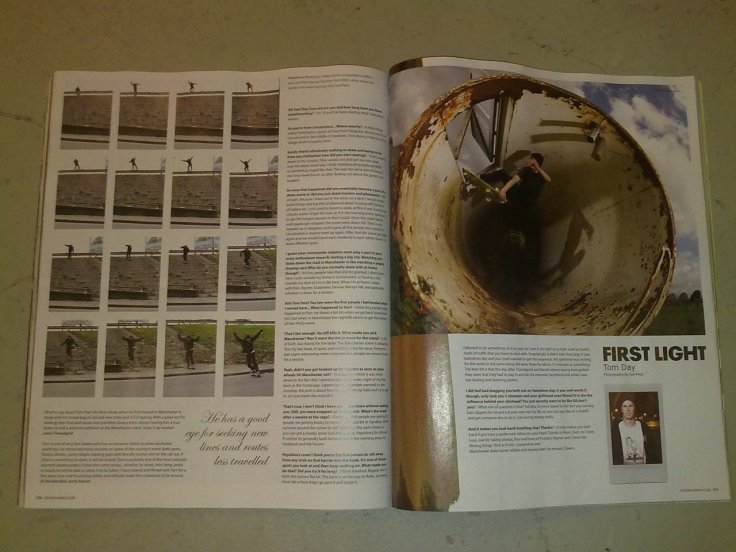 Our good mate Tom Day has received a First Light in this month’s Sidewalk! Props are in order – I’m particularly impressed by his full pipe crailslide! Cheers to Martyn Hill for the ghetto scan.
