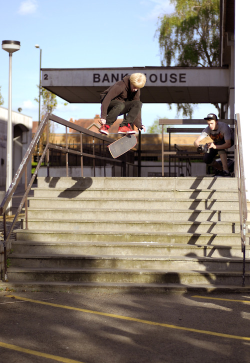 This “Boris” chap has been goin’ off in Cov recently. Ryan Bradley got this shot of him dominating Bank House 10 with a mental kickflip, and there are a few video clips appearing of him destroying Cov spots – the Rugby locals are invading!!!