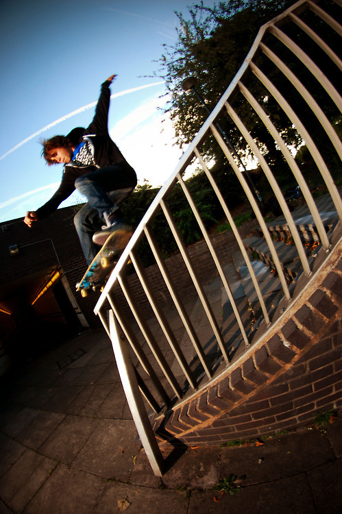 Finally… A legit photo of Lucas’ recent handrail demolition. 5-0 at the Subway rail. Photo by Ryan “Achyeahuh” Bradley.