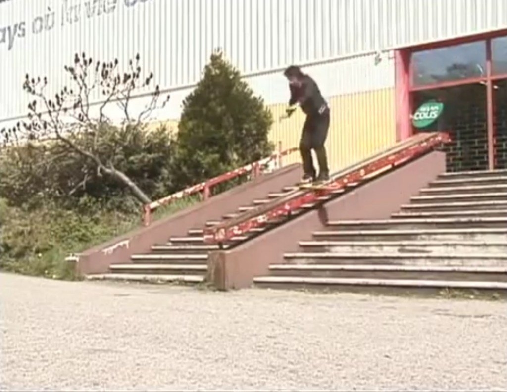 I’d say the true ender is supposed to be the slam on that monster of a set in Lyon that Jaws would go on to Melon about 20 years later, or Ali focusing a guitar. Just after those shenanigans you see him do a darkslide on a rail. The way he flips in, wobbles down the rail and then turns about 3 degrees out of it so he’s barely riding away and just stares in amazement at his feet until he stops rolling and then shouts “Wow!”… Fucking awesome! This was my first favourite skate video, which came out about a year or two after I started skating, and was the most heavily rinsed growing up.