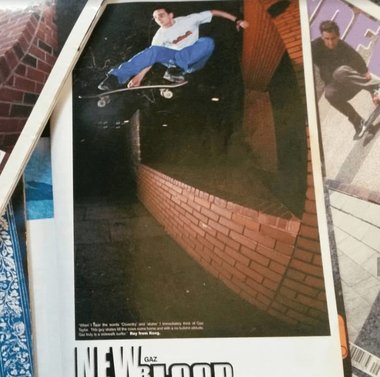 When I first started skating, there were a handful of older guys in Coventry I saw out and about who commanded the respect of the whole skate scene. People like Jim The Skin and Steve Spain were local legends. I learnt Pivot to Rock & Roll specifically because of Jim The Skin, but pretty much every other trick I learnt on Coventry terrain was me trying to channel Gaz Taylor. Seeing his photo of a Melon grab at Brickies in Sidewalk began my lifelong obsession with skating brick banks. As someone who I looked up to as a teenager, I was super stoked for him to write about who influenced him early in life.