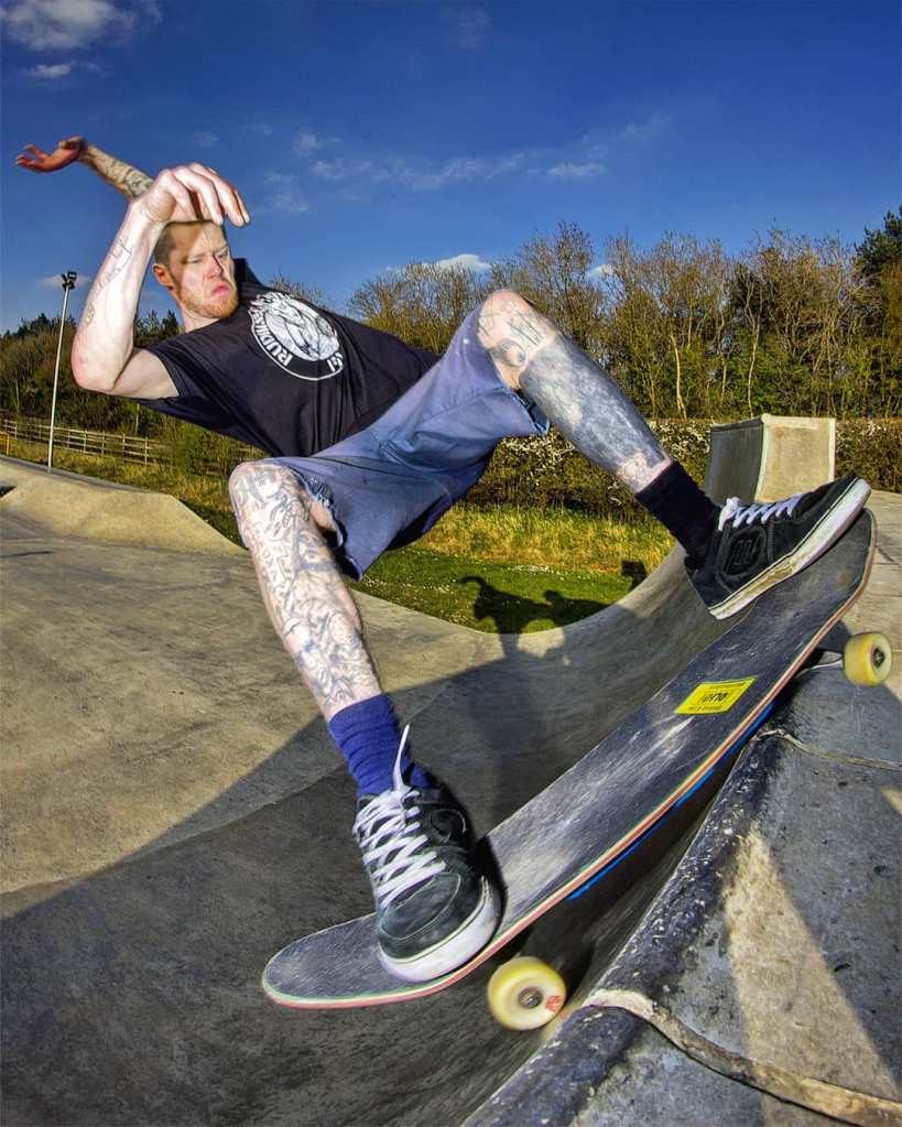 When I grind I want to feel the coping fight back. I don’t want to be able to roll onto the lip and glide along as if nothing’s happening. I like to feel and hear what’s going on, and know my trucks are either gaining dust or leaving behind a metal trail.