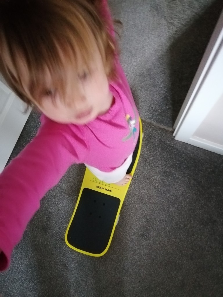 Having said all of this: toddler’s have a very strange attention span. My daughter has stepped on her Blast board probably a total of 5 times, and got bored of it pretty easily. If anything, she prefers standing on my board! I partly feel like this is because kids this age always want to have a go with what you are using (food, phone, anything we’re using she wants) – so she usually gravitates towards my board because she’s seen me riding it. She’ll pull her own board out and stand on it when I’m working in my office room, so at the very least she understands that the board is hers and wants to ride it, so that’s a start!