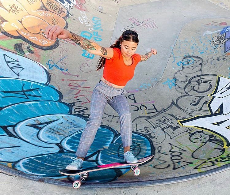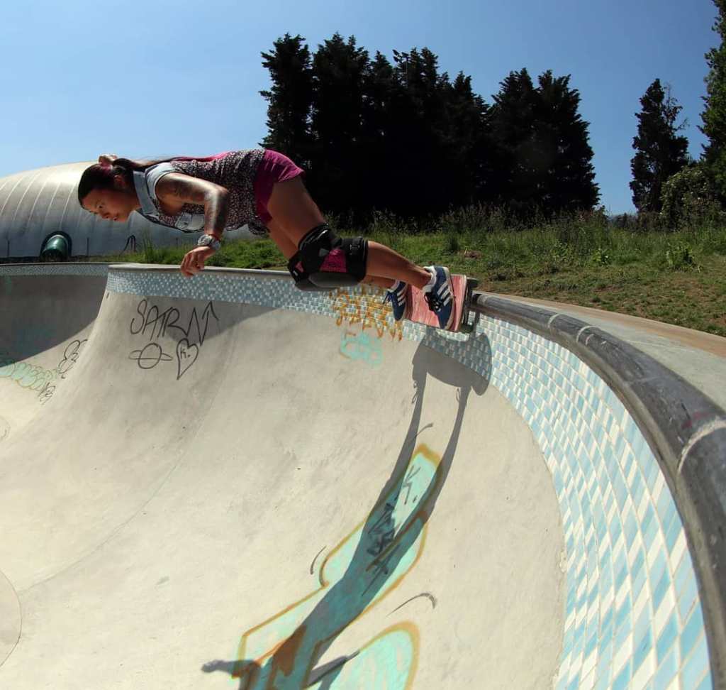 Be confident and just do it! There are plenty of women skate groups on Facebook and Instagram to join. Also, there are indoor skateparks and youth clubs that provide lessons – for example, I used to work for Brighton Youth Centre teaching men and women!