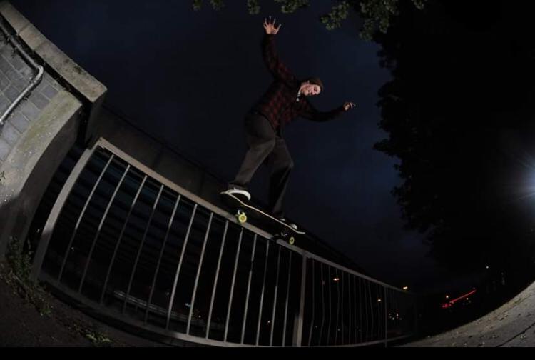 “I was watching a lot of Deshii Ohmoto footage (check out his night prowler part) and was looking for a spot to try my own ride on 5050. This one was right next to Cov ring road the wall was covered in moss and on the first attempt I slipped out falling into the road! The pic was originally used on the team page for Witchcraft.”