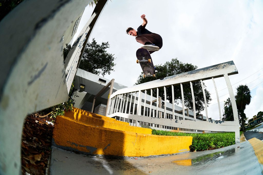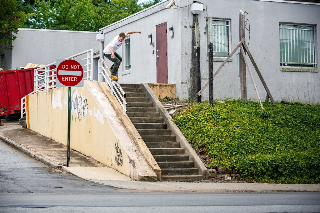 This section is capped off with an appearance from Toy Machine’s Blake Carpenter. Pulling out sick moves like a car towed FS Heelflip over a massive driveway, he spends his short stint on screen floating beautiful ollies, as well as some more technical tricks, over bump to bars. He caps it off with a SWITCH BACK 360 over a bump to bar.