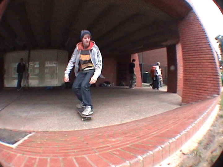 This trick is my favourite thing I ever did at Brickies. The steep banks found at each entrance into the underpass were a little spicy compared to the other banks, but there was one that had a safety net, with a little deck behind the bank. Every once in a while you could have some fun skating this 45 degree angle bank, and I’ve seen a fair few rad tricks go down on this part (Stan Byrne and Tony Lui have both done wraparound tail blocks on it, and Moose got a few cheeky moves on it in Franchi$e).