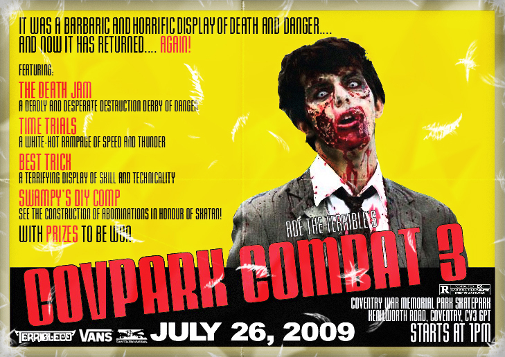 Shortly after this, through some connections at the council who had approached a few of us about the upcoming 2012 Olympics, the council started to show interest in what we were doing down at the War Memorial Park with Covpark Combat, and it was communicated to me that a skateboarding event could not happen at the War Memorial Park without the proper consent of Coventry City Council. Basically: Covpark Combat had gotten too big and the council were shutting it down unless I went through them.