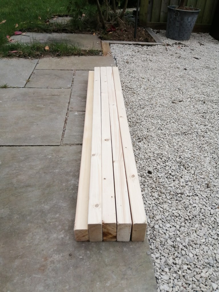 Next up I went and cut a bunch of timber beams. I needed 4 38mm x 89mm timbers, and a single 38mm x 63mm timber – all of these were 4 ft in length: