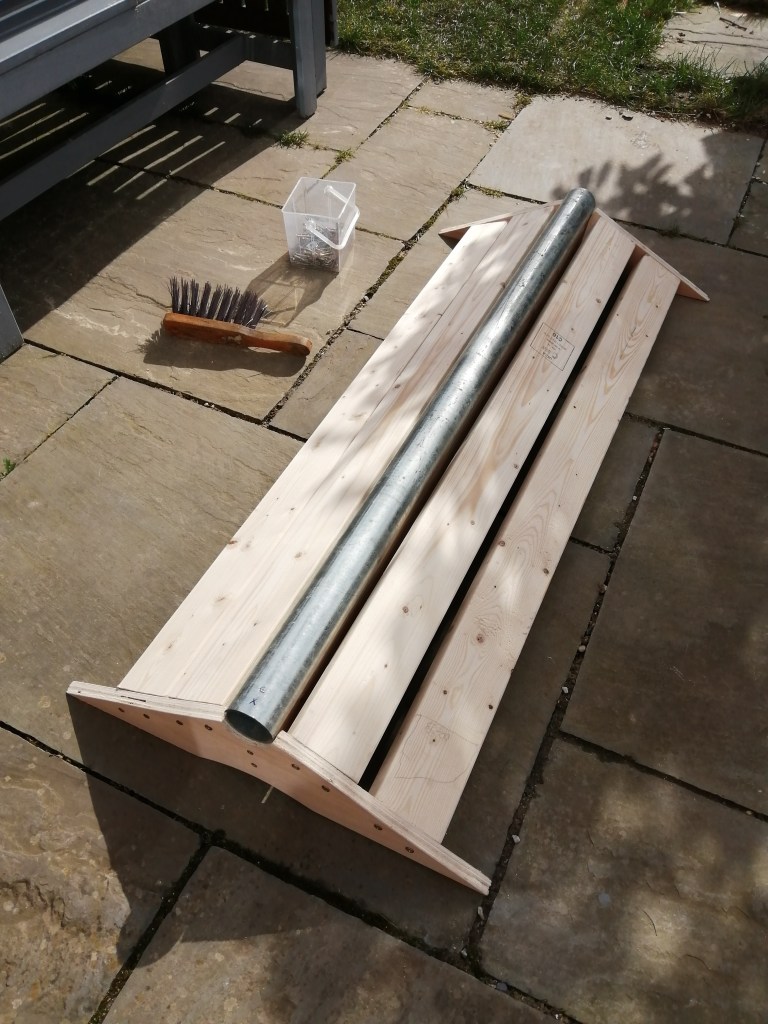 I had 2 pieces of 6mm plywood – dimensions are 1ft x 4ft each. I screwed these into the frame timbers… And I was done!
