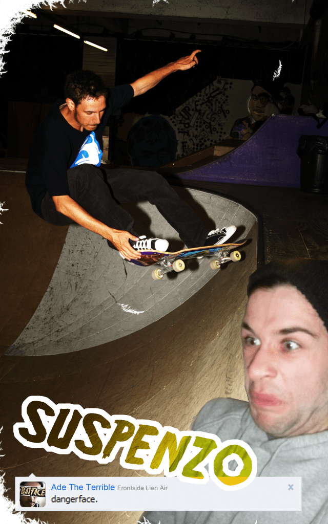 Rosko comes through with boneless 5050’s down Cov park hubbas and ends with a rad hippy jump to nosemanny, and Ade The Terrible gets stuck in at The Ripped and skates what looks like someone’s front room that’s been turned into a skatepark.