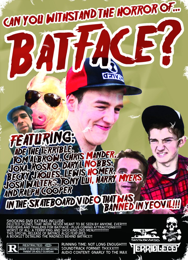 Following on from ‘Guitar Solos With Skateboards’, ‘Batface’ is the latest addition to Ade The Terrible’s strictly DIY Coventry video catalogue. This is also the second Terribleco DVD release of 2009 – have some of that!