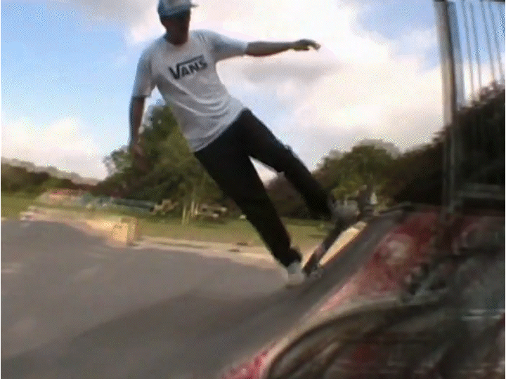 Whilst Matt could blast the hips and gaps higher, faster and further than anyone else, my favourite clips of Matt were when he got technical on the ledges at the park. In particular this cheeky move on the small funbox is the trick I always go back to when I think about Matt’s skill level – starting with a BS 5050 and then tweaking it gradually into a back tail, kicking a quick shuv out at the end.