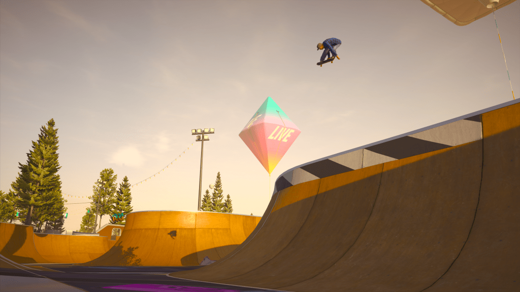 Where the grinds fall down is on ramps. I could not figure out a consistent way to get into grinds on transition. Pushing forward on the left stick would sometimes push me into a Noseslide or Nosestall. Sometimes riding on the coping would initiate a 5050 or boardslide. It’s all very fiddly, and it continues an annoying trend of modern skateboarding games completely failing when it comes to transition skating.